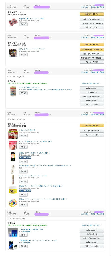这次买的东西杂了些,而且多次下单,也进行了合箱,先说一下购买过程中涉及到的问题。订单截图,亲们能看出这次一共有五个订单。每个产品的具体链接和使用感受我写在了最后面,咱们还是按照顺序一样样来说,先说买的时候我的经验。
